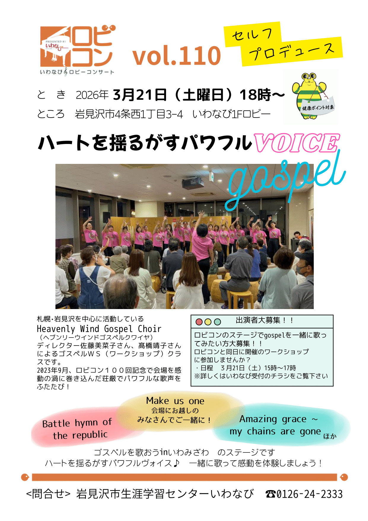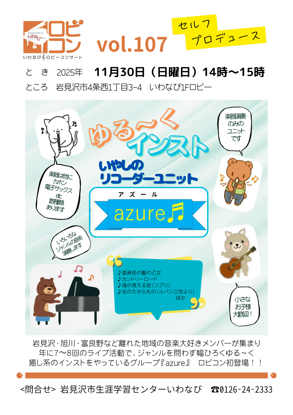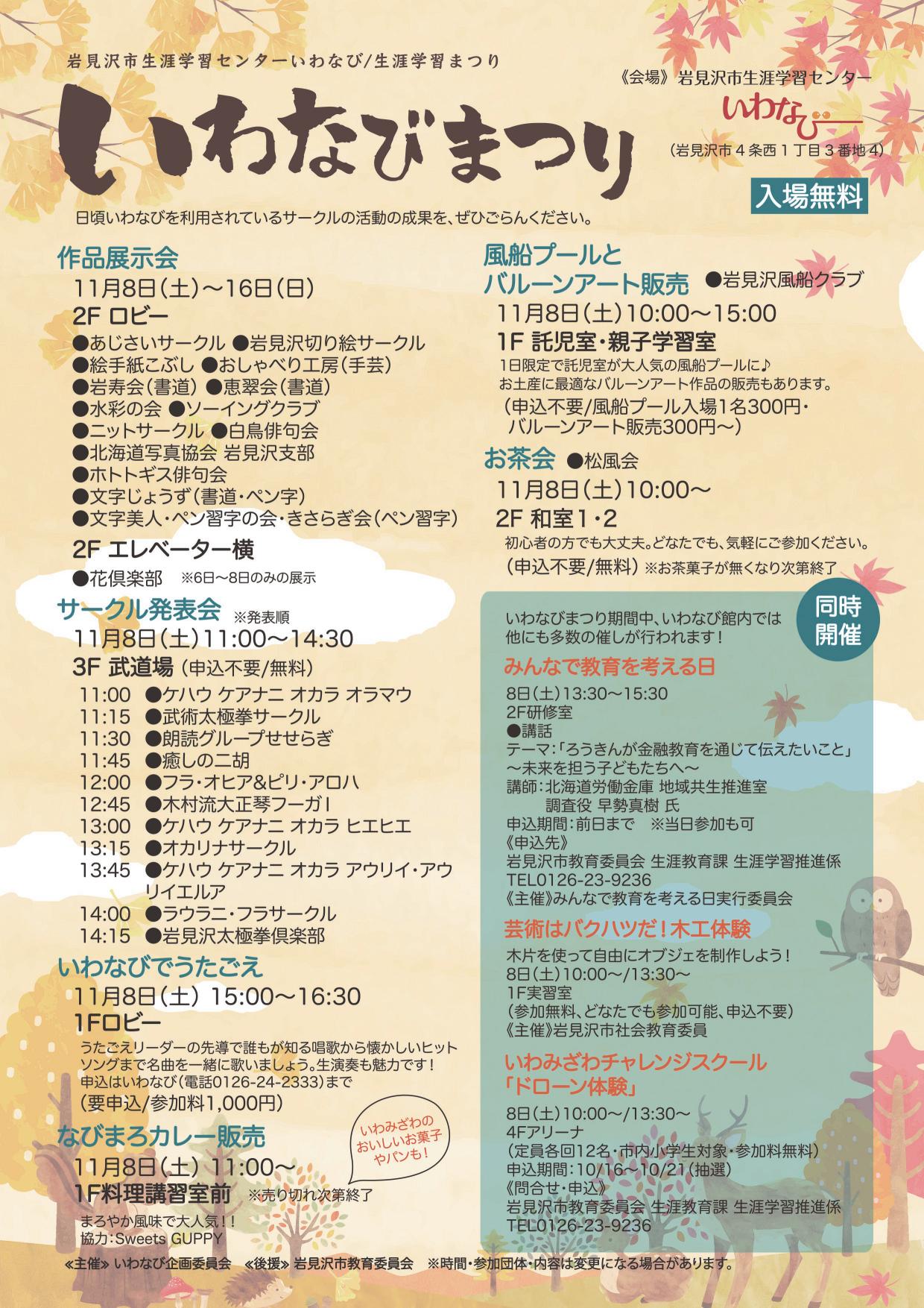 お問い合わせ:岩見沢市生涯学習センターいわなび TEL 0126-24-2333